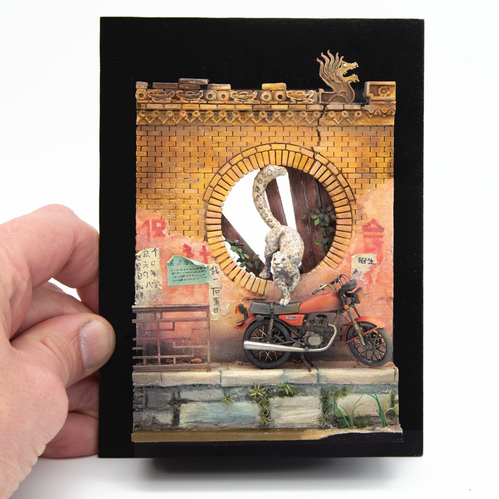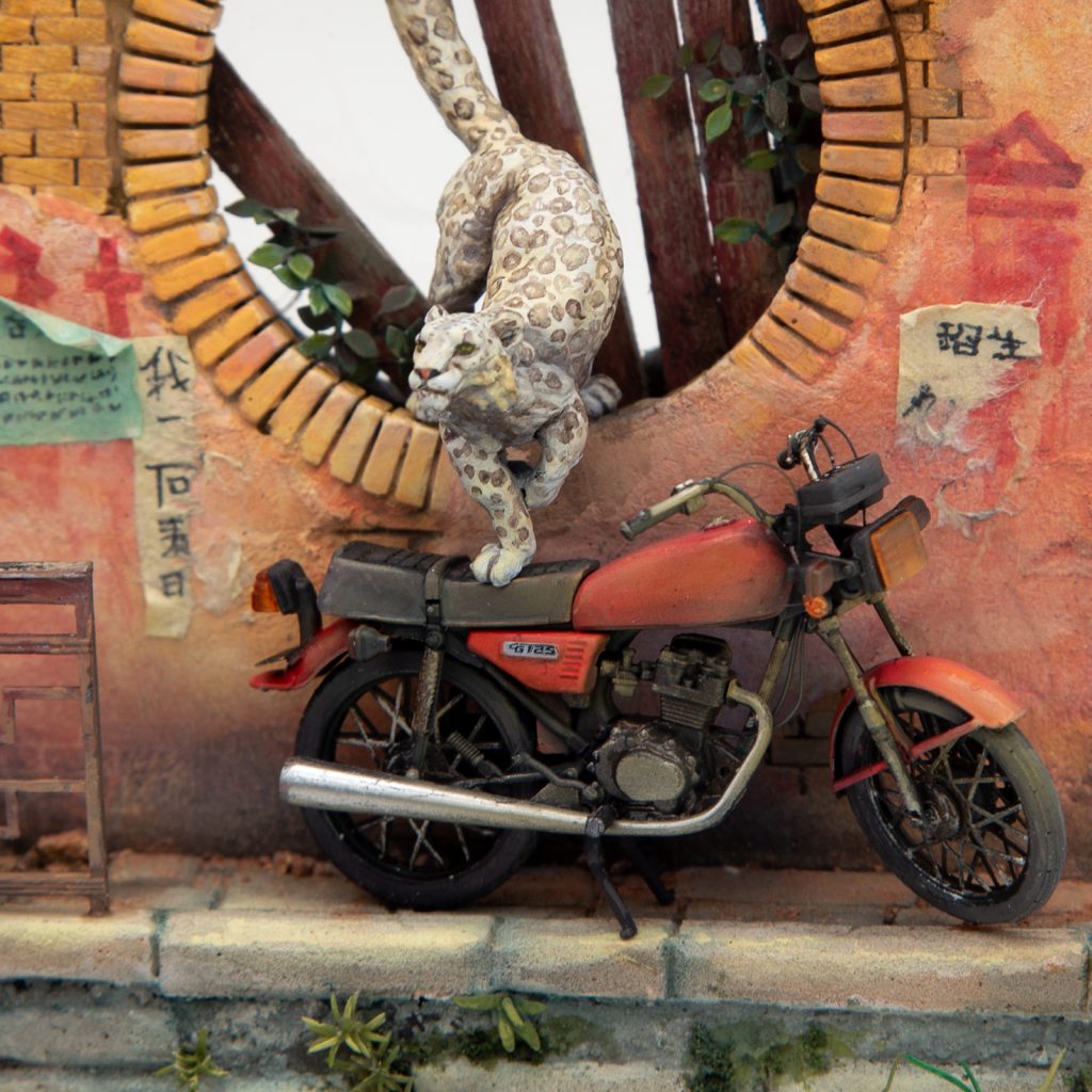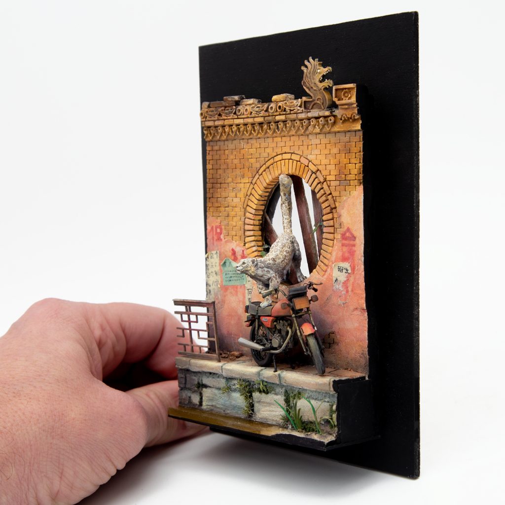 Thanks to those following my step by step as stories on Facebook and Instagram! The motorbike is the recent @akinteractive.official cg125. My apologies to my Chinese / Chinese speaking friends as I was pointed out that some of the characters written were completely off. So with the help of a friend, I ripped them of and placed new posters. May I remember the point : by the end of the 19th century, the great Russian painter Vereshagin went in China - probably to spy. He did a handful of paintings, including that wall here. So the Diorama imagines the same wall 100 years later.